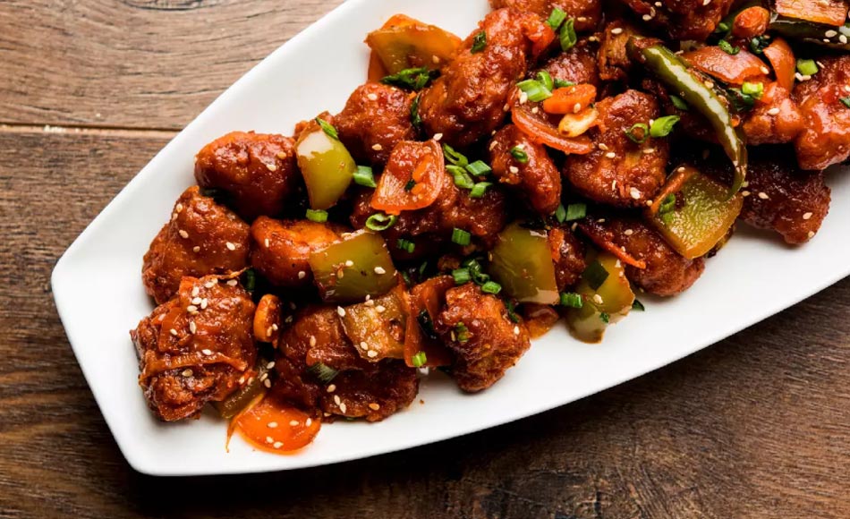 Boneless pieces of chicken fried and sautéed in sauces with chilies